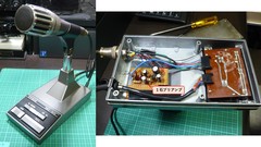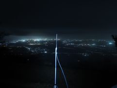 今回使用したスリーブアンテナ(もどき)はとにかく動作が不定で、カメラ三脚に取り付けた基台に設置して4mの同軸につないで調整しました。折り返した網線の長さを調整して、SWRが下がったのでビニールテープを巻くと完全にズレてしまいます。テープを巻いた上から手で摘まむとまたズレます。